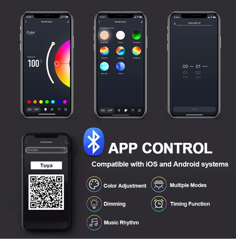 📱 100% Inteligente e Conectada ✔️ Controle via App: Baixe o app Tuya ou Smart Life e comande a cor e intensidade pelo celular (Bluetooth). ✔️ 16 Milhões de Cores: RGB completo. Vá do laranja pôr do sol ao roxo neon em um toque. ✔️ Controle Remoto Incluso: Praticidade total se não quiser usar o celular.